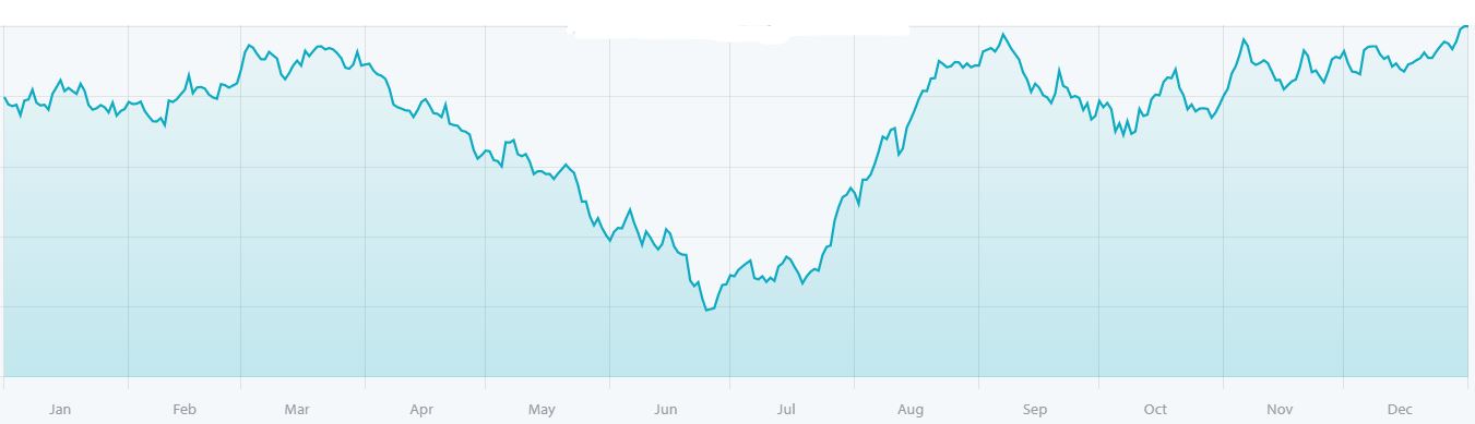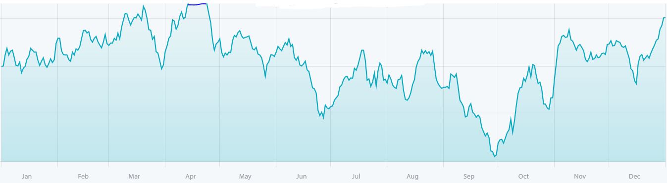 Direi che la tendenza è stata abbastanza laterale nella prima fase, con una debolezza a partire dal mese di maggio ed un minimo attorno a giugno/luglio e poi un minimo generatosi tra settembre ed ottobre che ha portato ad una parte finale dell'anno tendenzialmente al rialzo. Chiaramente il comportamento appena descritto fornisce un'idea di come questo anno possa essere: sostanzialmente choppy, laterale e con volatilità, con una tendenza al punto di partenza.