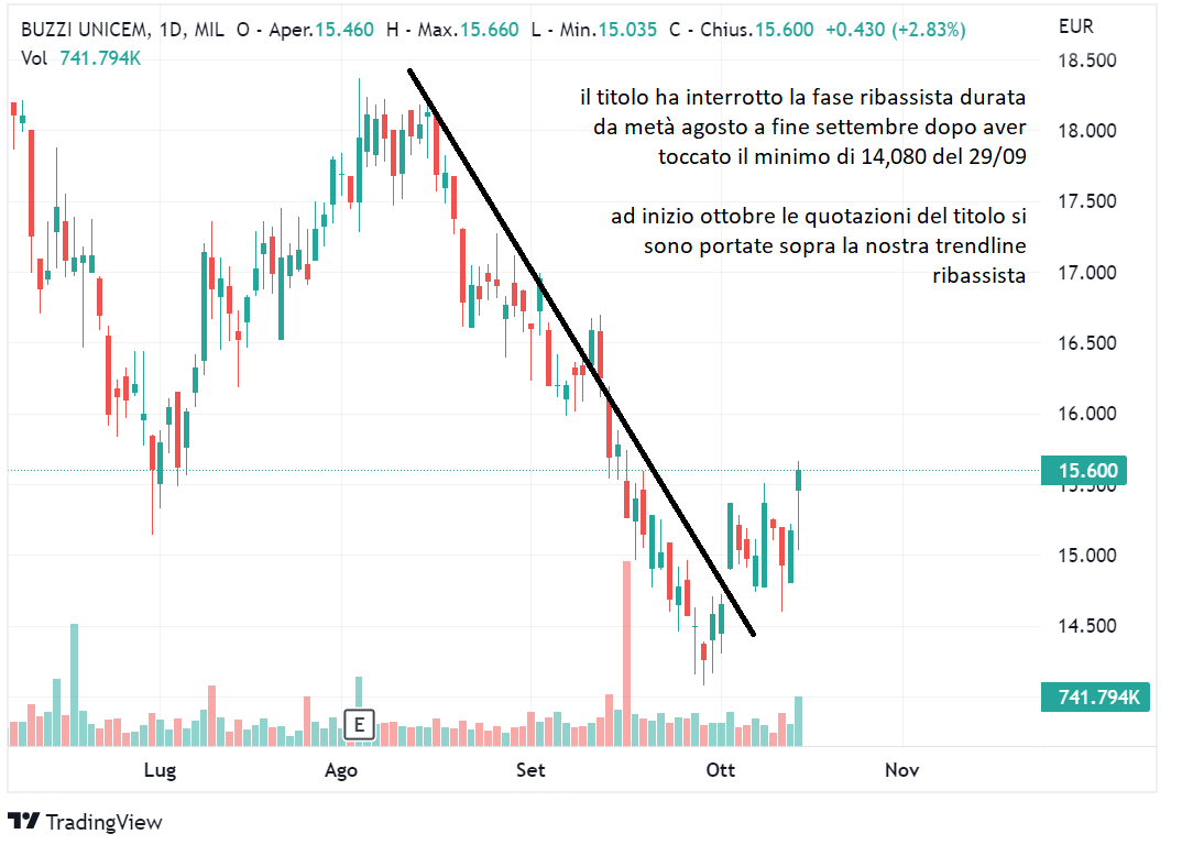 L’analisi grafica di Buzzi Unicem, titolo pescato dalla lista del nostro ranking controvalore