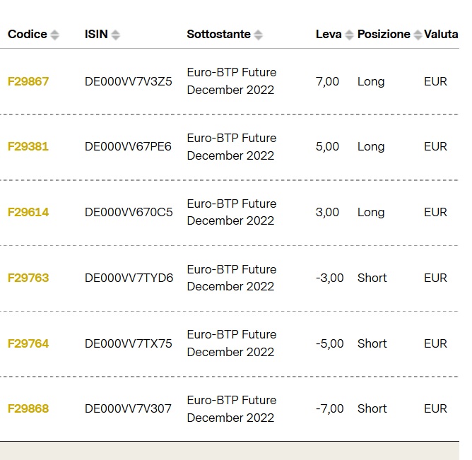I tassi di interesse rimangono uno dei temi più caldi del 2022 e gli investitori guardano con attenzione alle politiche monetarie delle banche centrali e all’impatto che stanno avendo e avranno sui rendimenti delle obbligazioni. In quest’ottica Vontobel ha ampliato la propria gamma di certificati a Leva Fissa sui tassi di interesse e mette a disposizione sei nuovi strumenti per andare long e short sui Btp, con leve 3, 5 e 7.