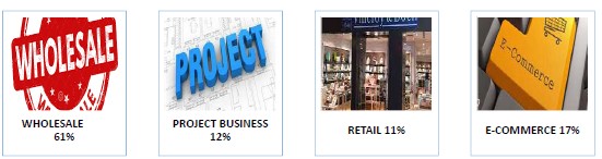 Per le vendite, VILLEROY & BOCH, si affida prevalentemente a grossisti (61%) anche se sono attivi anche altri canali come il retail diretto (11%), l’E-Commerce (17% in netta crescita) ed i progetti (12%)