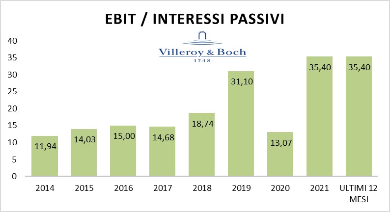 Dal grafico che segue emerge ancor più chiaramente quanto sia elevato il COVER INTEREST (EBIT / Interessi passivi).