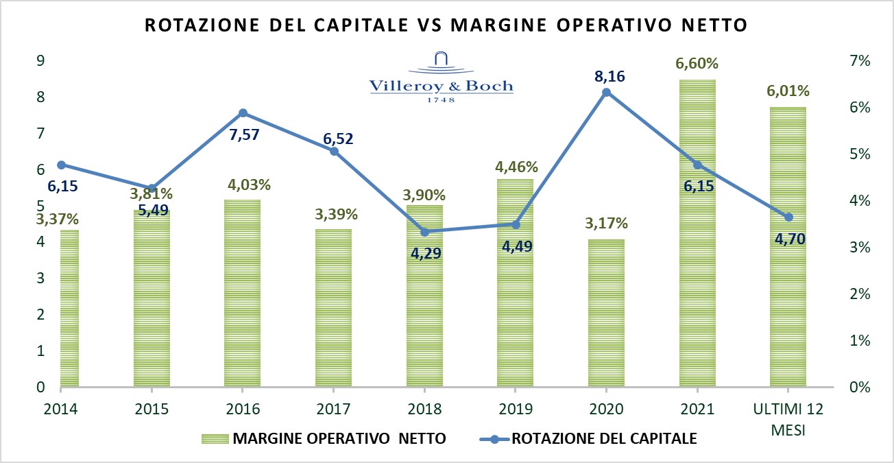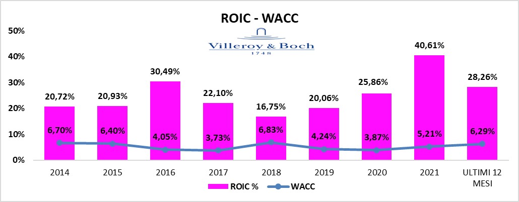 Dall’analisi del ROIC emerge che, il core business di VILLEROY & BOCH ha realizzato rendimenti operativi superiori al costo del capitale.