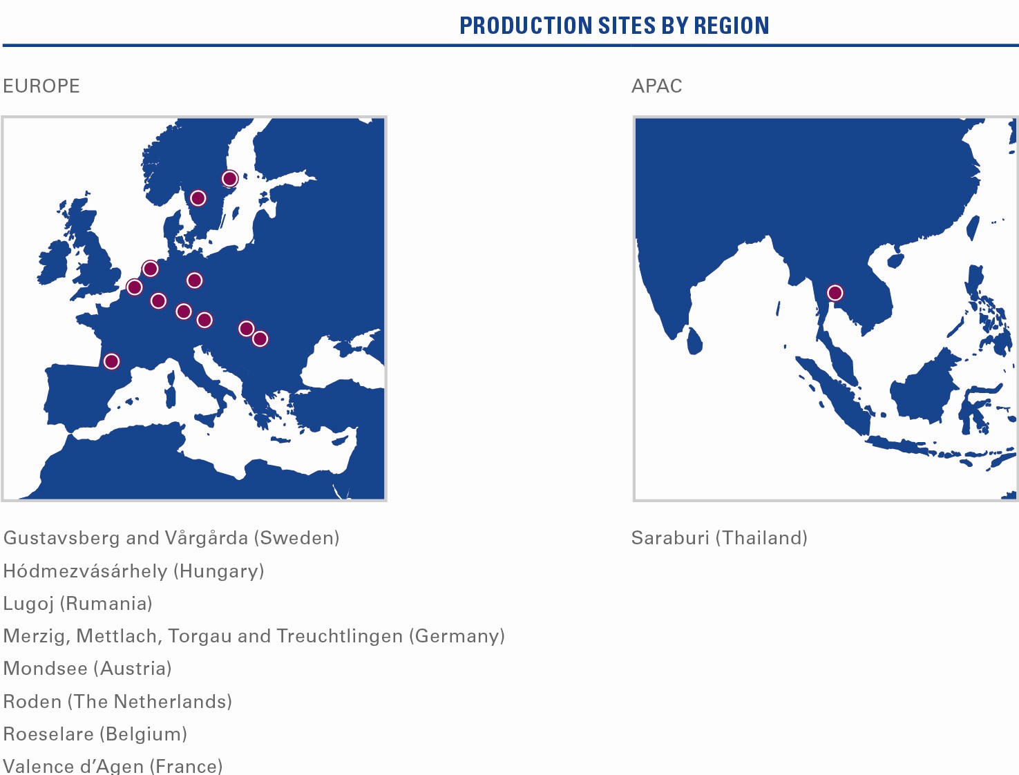 La sede direzionale è in Germania anche se la produzione è dislocata in 13 siti, 12 dei quali concentrati in Europa mentre l’altro è ubicato in Thailandia.