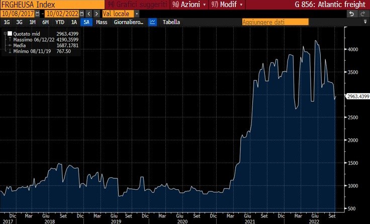 Dal grafico che segue si nota facilmente l’andamento del trend. Ai noti problemi causati dal Covid-19 si sono aggiunti quelli causati dall’aumento dei costi di alcuni input produttivi/logistici.