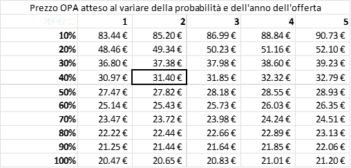 In ogni caso, valori di molto distanti da quelli impliciti nei prezzi OPA della tabella precedente: