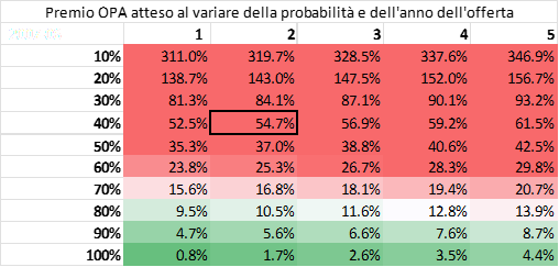 Per avere un metro di paragone, in questo caso, ci viene in aiuto un paper della Consob uscito nel 2021, che ha studiato le OPA avvenute in Italia dal 2007 al 2019: https://www.consob.it/documents/46180/46181/dp9.pdf/f8429feb-52f3-43b7-a149-0e035a1b6119.