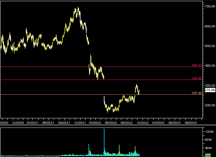 Più volte l'abbiamo inserita nelle nostre analisi del recente passato, portando a casa degli egregi mini rimbalzi estrapolati da un marcato downtrend. Ora la situazione inzia a delinearsi più fluida invitando ad un primo ingresso in area 255 dollari e ad un secondo ai 230, con il primo target ai 330 dollari e con prospettiva di ritorno ai 400 dollari.