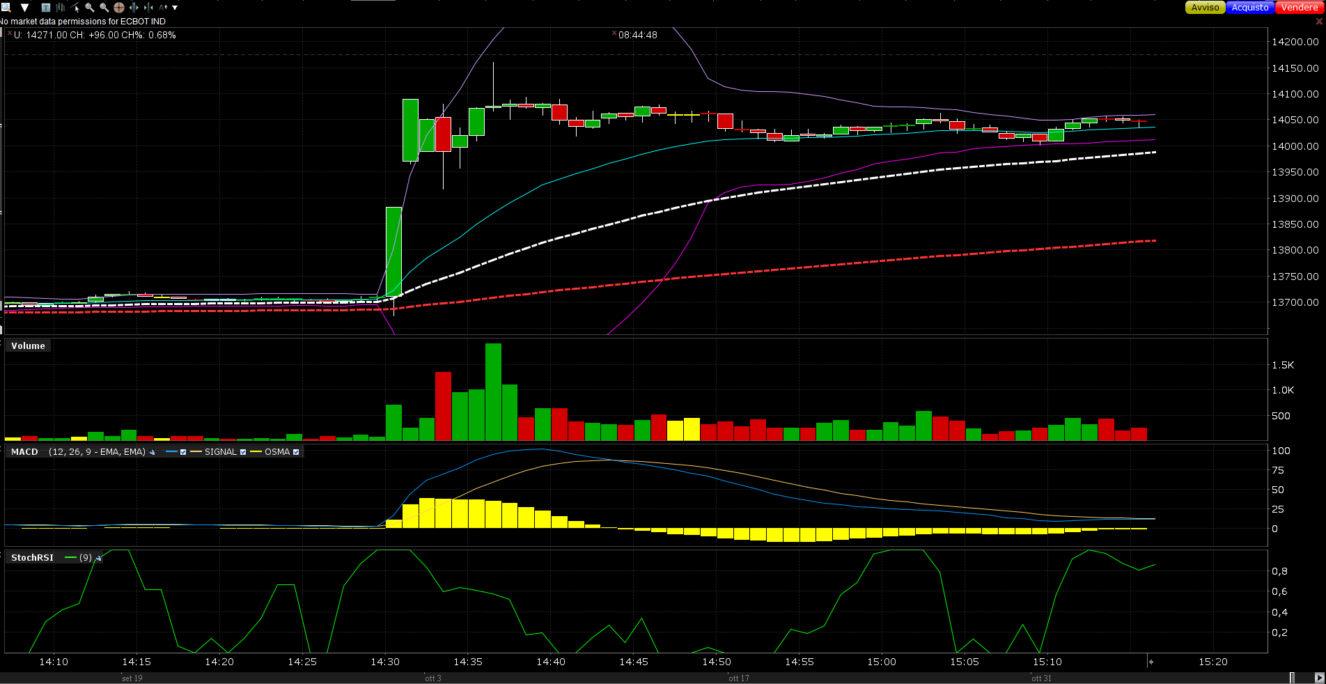 Essendo tuttavia una fase di forti turbolenze, ed essendo stati raggiunti in pochi minuti dei livelli target di rimbalzo, nulla vieta di considerare anche un rientro del derivato ai 13600 nell'arco di due settimane.