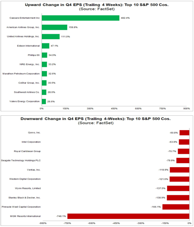Di seguito l’elenco delle 10 società che hanno rivisto le proprie previsioni di utili in percentuale maggiore e minore, per il quarto trimestre, rispetto alla precedente comunicazione.