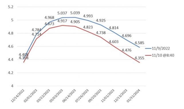 Il presidente della FED di Kansas City, Esther George, giovedì scorso si è nuovamente espressa a favore di un ritmo dei rialzi dei tassi più lento. George ha detto: “Un approccio più misurato ai rialzi dei tassi può essere particolarmente utile mentre i decisori politici valutano la risposta dell’economia ai tassi più alti”. “Con il ciclo di inasprimento che continua, ora è un momento particolarmente importante per evitare di contribuire indebitamente alla volatilità del mercato finanziario, specialmente in quanto la volatilità mette a dura prova la liquidità del mercato con il potenziale di complicare i piani di deflusso di bilancio”. (Finalmente un’economista con buon senso, ndr).