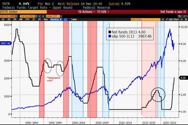 E questi 50 bps di taglio cozzano con lo scenario FED. I 75 bps per il meeting di dicembre sono stati rapidamente esclusi e il mercato si domanda ora se si possa essere messa sul tavolo anche l’idea dei 25 bps. Questo nonostante le dichiarazioni dei membri FED abbiano provato a ricordare che la strada da fare sui tassi è ancora lunga e che il rischio maggiore rimane quello di alzare troppo poco piuttosto che quello di alzare troppo.