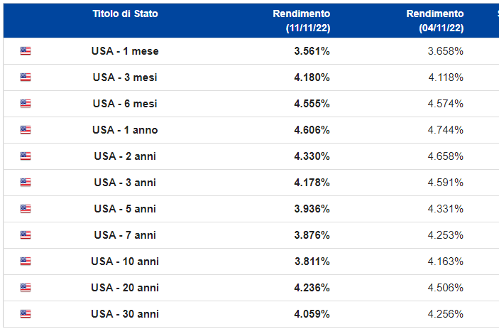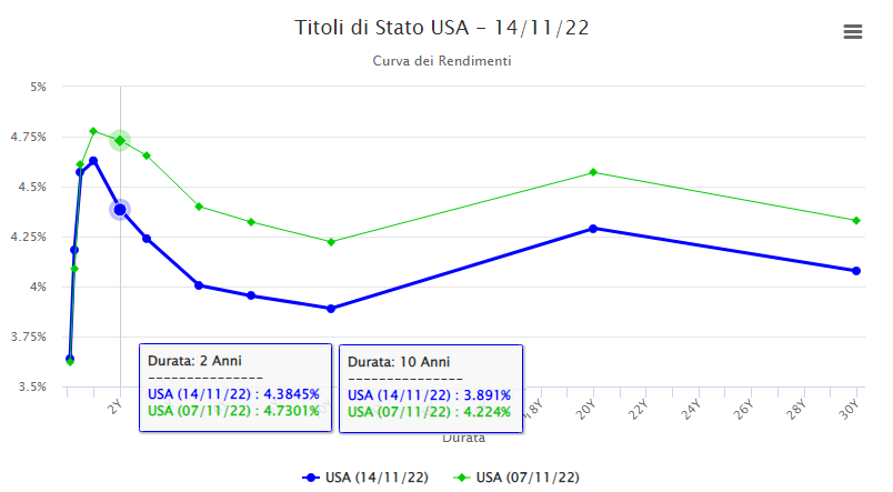 Ecco il grafico comparativo settimanale delle varie scadenze tra la chiusura di lunedì scorso 07 novembre e quella di oggi 14 novembre:
