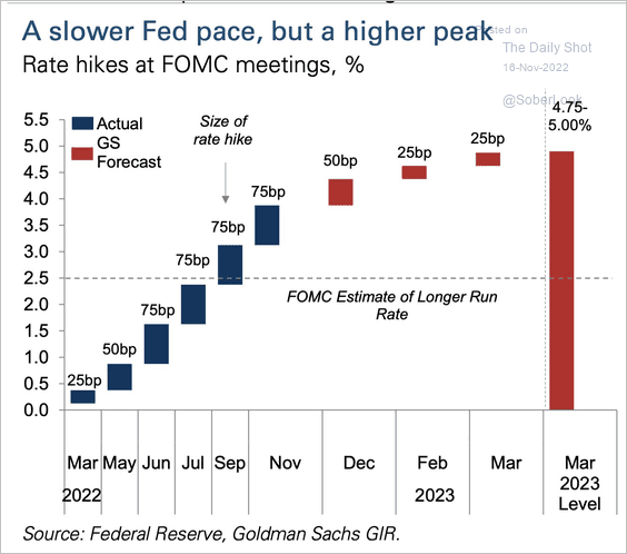 Sostanzialmente a marzo del 2023 Goldman sostiene che sarà tutto finito e se notate la derivata degli incrementi dei tassi si sta appiattendo e quindi diciamo che potrebbero anche esserci delle belle sorprese davanti (il tir si sposta ?).
