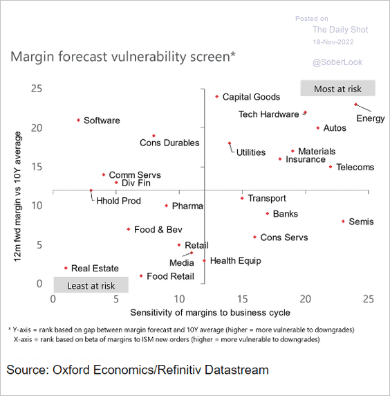 Ovviamente ci sono settori che soffrono e ci sono settori che volano e se in questa situazione di panico macro i settori più a rischio sono quelli che vediamo nel quadrante in alto a destra ci sono anche quelli che ne trarranno profitto e si trovano nel quadrante in basso a sinistra:
