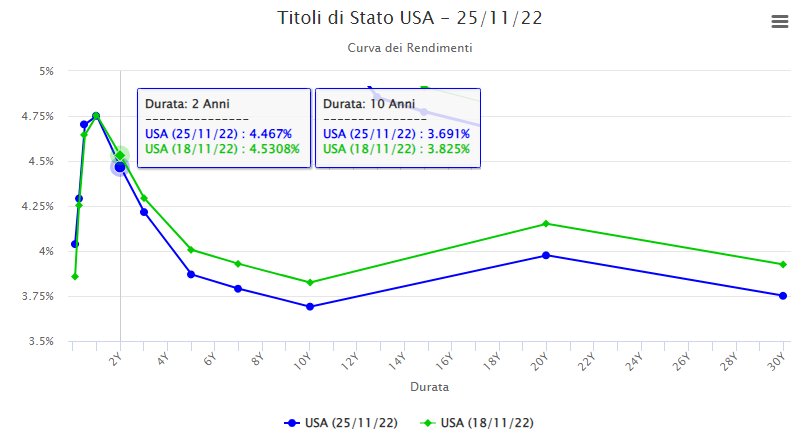 Ecco il grafico comparativo settimanale delle varie scadenze tra la chiusura di lunedì scorso 21 novembre e quella di oggi 28 novembre: