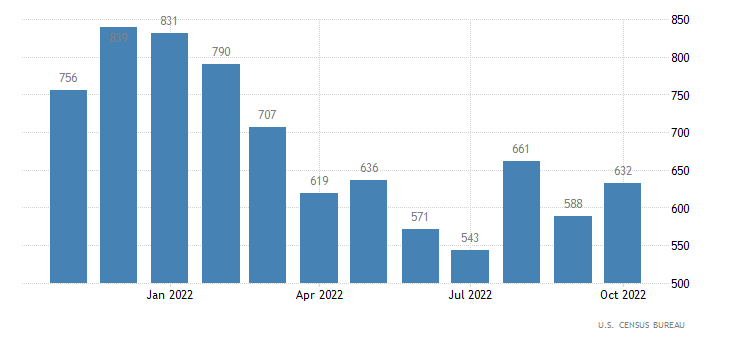 Le vendite di nuove case a ottobre hanno sorpreso clamorosamente al rialzo. Ma gli esperti mettono in guardia contro questi numeri, in quanto non tengono conto delle cancellazioni (e infatti i numeri precedenti sono stati rivisti al ribasso). Il dato a livello mensile ad ottobre riporta vendite per 632 mila, in crescita del 7,5% rispetto a settembre, quando erano state 588 mila (riviste da 603 mila). Il consensus prevedeva un calo a 570 mila. Il dato è rilasciato dall’U.S. Census Bureau.