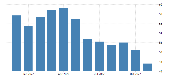 Terminiamo con il dato preliminare di novembre dei PMI a cura di S&P Global che a differenza di quelli Eurozone, sono usciti orrendi e sotto attese. Si registra la prima entrata in contrazione del manifatturiero dalla primavera del 2020, e i servizi sono tornati a contrarsi sensibilmente. Nello specifico il manifatturiero si attesta a 47,6 punti, in discesa rispetto ai 50,4 punti di ottobre e sotto al consensus fissato a 50,0 punti.