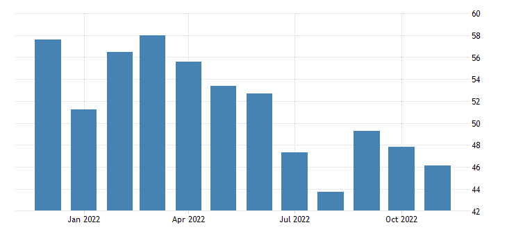 Nel settore dei servizi, invece, il dato preliminare di novembre scivola a 46,1 punti, al ribasso rispetto alla rilevazione di ottobre di 47,8 punti e sotto al consensus di 47,9 punti. I dati sono rilasciati da Markit Economics.