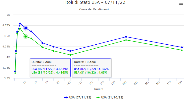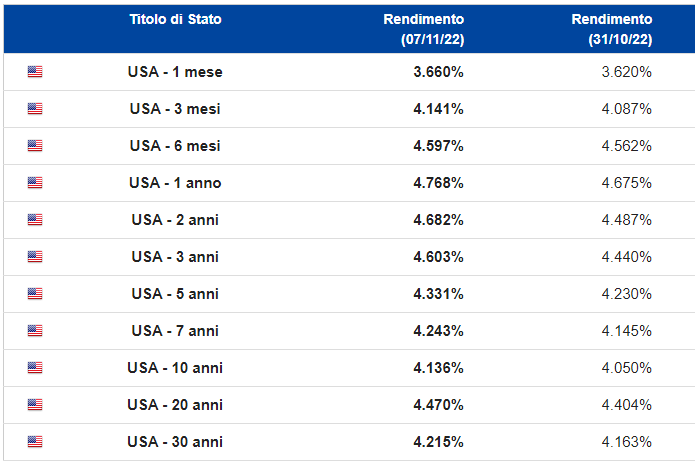 Ed il comparativo settimanale delle varie scadenze tra la chiusura di lunedì scorso 31 ottobre e quella di oggi 07 novembre: