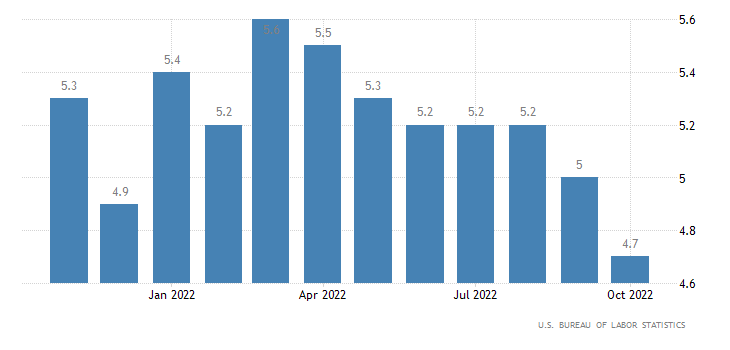 A livello annualizzato la crescita registrata ad ottobre è del 4,7%, come indicato dal consensus e sotto alla rilevazione di settembre del +5,0%. I dati sono rilasciati dall’U.S. Bureau of Labor Statistics.