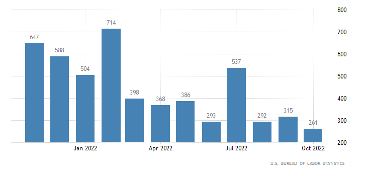 Ad ottobre nel settore non-agricolo sono stati creati 261 mila posti di lavoro, contro un consensus fissato a 200 mila ed un dato di settembre di 315 mila (rivisto da 263 mila).
