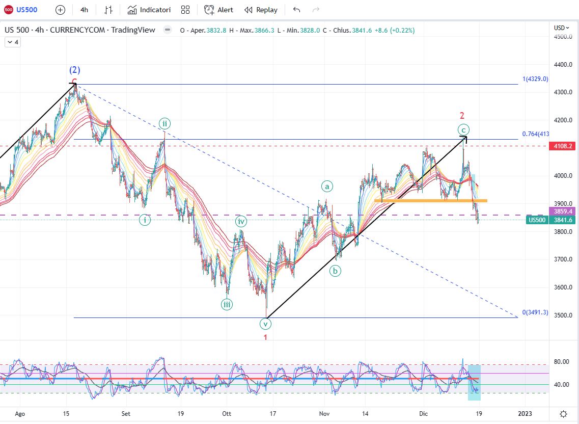 La rottura dei supporti era nell’aria e puntuale come una cambiale è arrivata. Una rottura netta per il Dow Jones e l’S&P500, più modesta sul Nasdaq. Se la rumba non inizia subito, sarà dopo le festività Natalizie ma se siamo su un’onda 3 di (3) i fuochi d’artificio non potranno mancare.