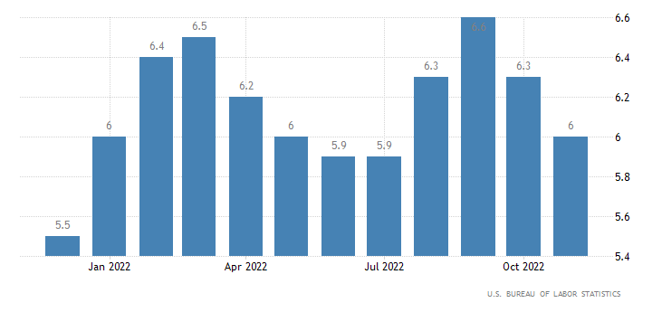 A livello annualizzato, la crescita di novembre è del 6,0%, contro un consensus del +6,1% ed una rilevazione di ottobre del +6,3%. I dati sono rilasciati dall’U.S. Bureau of Labor Statistics.