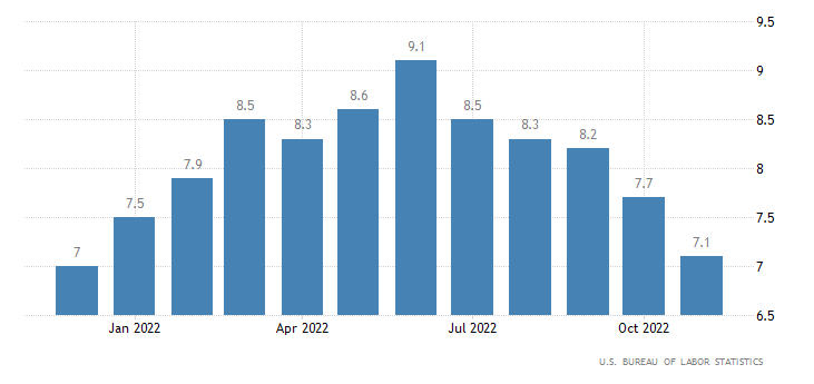 Per la seconda volta di seguito, il CPI USA ha sorpreso clamorosamente al ribasso. L’indice dei prezzi al consumo a livello annualizzato nel mese di novembre cresce del 7,1%, segnando un rallentamento rispetto al +7,7% di ottobre e realizzando una crescita inferiore al +7,3% indicato dal consensus. Il dato è rilasciato dall’U.S. Bureau of Labor Statistics.