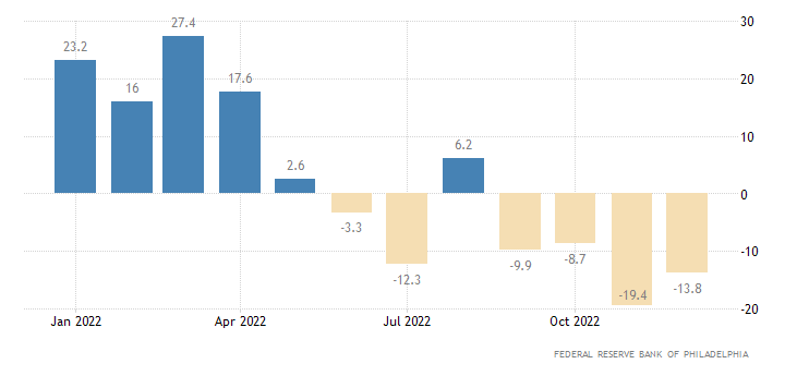 Il Philadelphia Fed Manufacturing Index recupera meno delle attese, passando dal dato di -19,4 punti di novembre a quello di -13,8 punti di dicembre, contro un consensus che prevedeva una contrazione ancora meno significativa a -10,0 punti. Il dato è rilasciato dalla Federal Reserve di Filadelfia.