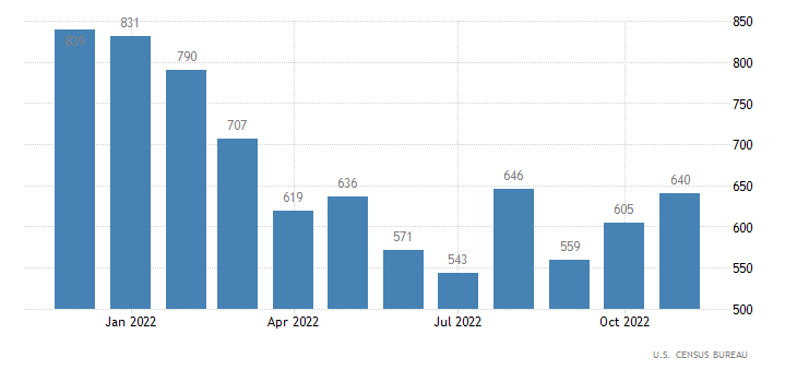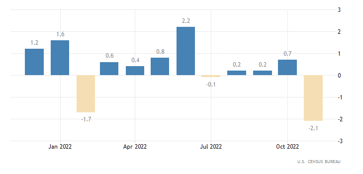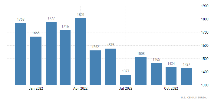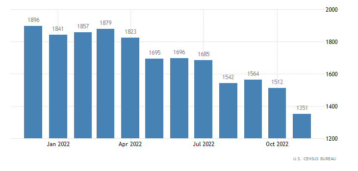 I dati sui nuovi cantieri ed i permessi di costruzione di novembre sono scesi e se i primi sono diminuiti meno delle attese, i secondi hanno fatto un fosso dell'11%. Non che sia una sorpresa. Sappiamo che vi è un enorme numero di cantieri negli USA che è in via di completamento, iniziato in fase di boom della domanda (e tassi a zero) e rimasto indietro per mancanza di materiali e manodopera. Arriverà sul mercato nel 2023 e metterà ulteriore pressione ai prezzi delle case, agli affitti (con effetti positivi sul CPI) e sul settore (con effetti negativi per la crescita e l'occupazione). Il calo dei permessi di costruzione riflette questa realtà.