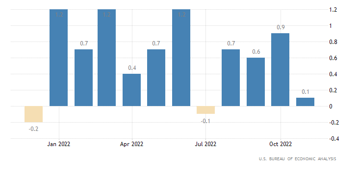 Il dato annualizzato, invece, a novembre cresce del 4,7% come indicato dal consensus; appena sotto al +5,0% di ottobre. I dati sono rilasciati dall’U.S. Bureau of Economic Analysis.
