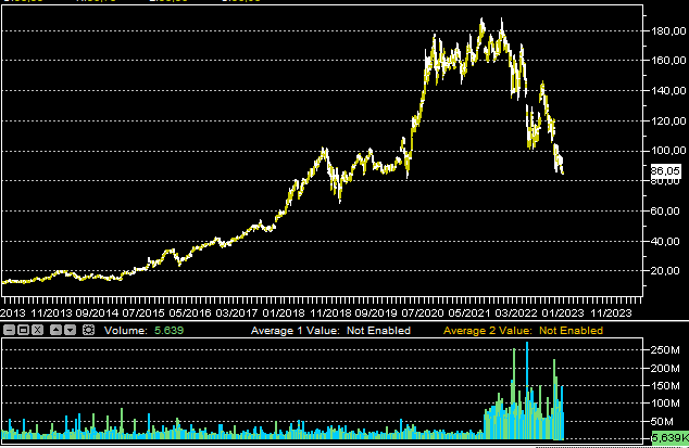 Tutti i magiori titoli azionari che avevano dominato la ribalta, come Netflix, Tesla, Amazon e chi più ne ha più ne Meta...pardon...metta, hanno subito una nettissima sforbiciata alle loro quotazioni che possiamo vedere nel dettaglio.