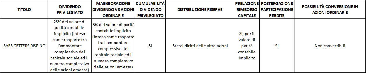 Partiamo con il riepilogare le caratteristiche delle azioni di risparmio, definite nello Statuto sociale di SAES Getters: