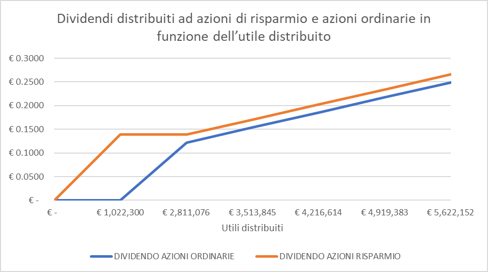 - quando l’utile distribuito è esattamente pari al dividendo privilegiato delle azioni di risparmio e non vengono remunerate le azioni ordinarie
