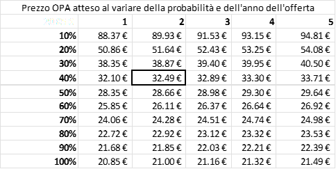 In ogni caso, valori di molto distanti da quelli impliciti nei prezzi OPA della tabella precedente: