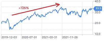 Il quadro degli ultimi tre anni in questo caso non cambia troppo le carte in tavola: il rialzo di azioni Prysmian è stato costante ma significativo e ci regala oggi una bella tripla cifra: +126%.