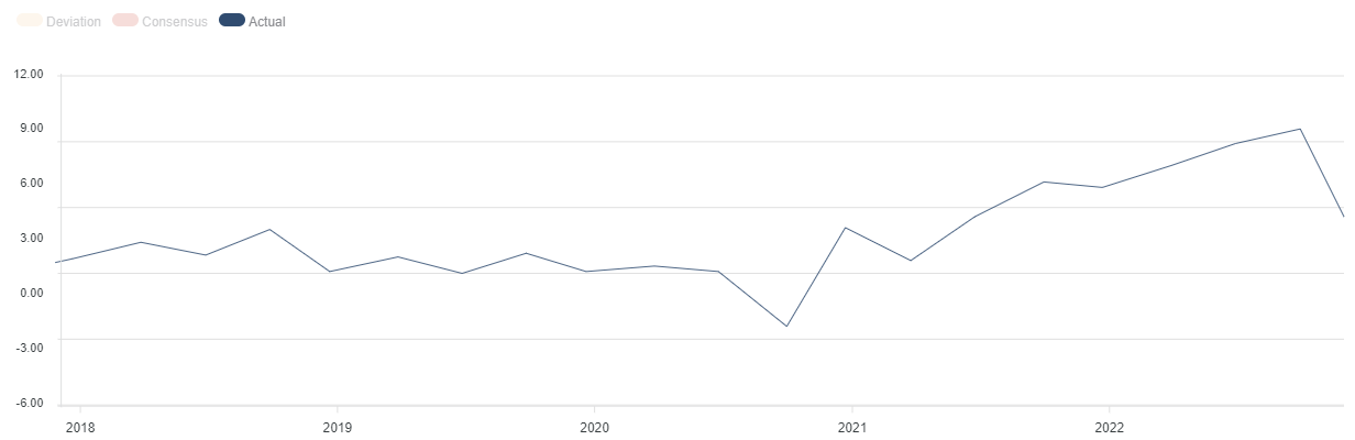 La terza revisione del PIL USA del terzo trimestre non ha portato grosse rivoluzioni, ma i dati sui prezzi sono un po' sopra attese. Il dato preliminare dell’indice dei prezzi PIL nel terzo trimestre 2022 cresce del 4,3%, appena sopra al dato preliminare di ottobre del 4,1% ed ampiamente sotto al dato del secondo trimestre del +9%. Il dato è rilasciato dall’U.S. Bureau of Economic Analysis