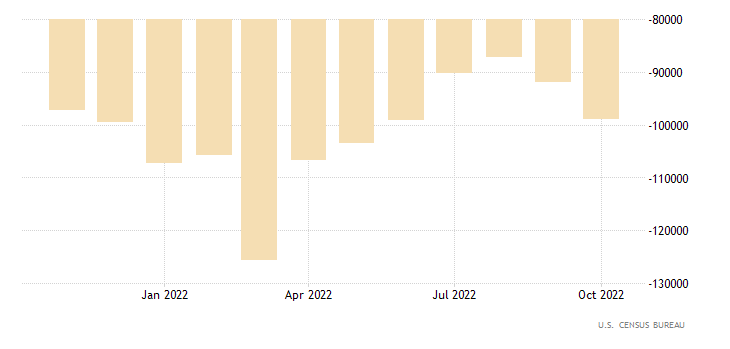 La rilevazione preliminare di ottobre sulla bilancia commerciale USA mostra un deficit molto più grosso delle attese, cosa che andrà a discapito delle stime di GDP per il trimestre in corso. La differenza in valore tra beni importati ed esportati, è pari a -99,00 miliardi di dollari; a settembre era a -91,91 miliardi di dollari (dato rivisto da -92,22 miliardi di dollari). Il dato è rilasciato dall’U.S. Census Bureau.