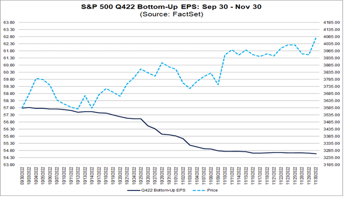 Ma gli analisti mentre hanno diminuito le stime degli utili in aggregato per il quarto trimestre, stavano anche diminuendo le stime degli EPS in aggregato per il 2023.