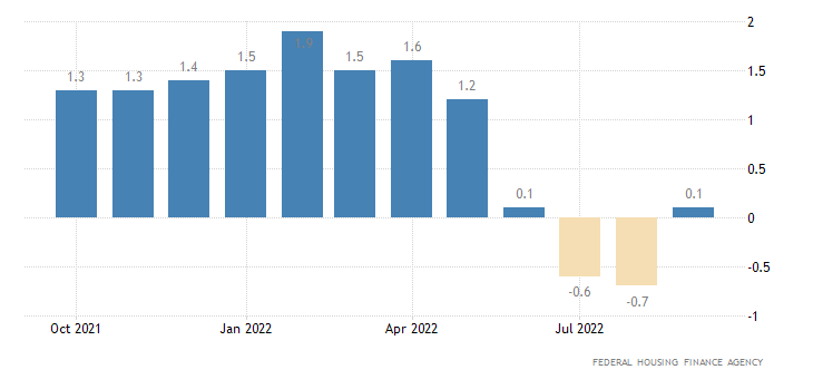 L’indice di prezzo delle abitazioni a livello mensile a settembre cresce dello 0,1%, in senso opposto rispetto al -0,7% registrato ad agosto. Il dato è rilasciato dalla Federal Housing Finance Agency.