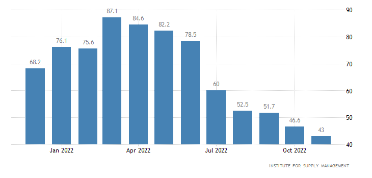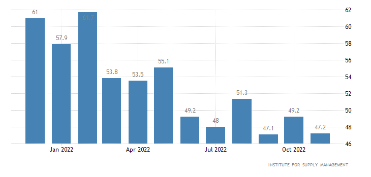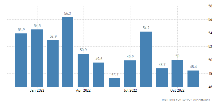 Il PMI manifatturiero rilasciato da ISM non ha bissato il disastro del Chicago PMI, ma è comunque uscito sotto attese, scendendo dai 50,2 punti di ottobre ai 49,0 punti di novembre, deludendo il consensus fissato a 49,8 punti.