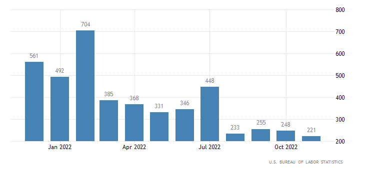 Nel settore non-agricolo privato i posti di lavoro creati a novembre sono 221 mila, dato che segna un calo rispetto ai 248 mila posti di lavoro creati ad ottobre (rivisti da 233 mila), ma che si attesta sopra al consensus di 190 mila. I dati sono rilasciati dall’U.S. Bureau of Labor Statistics.
