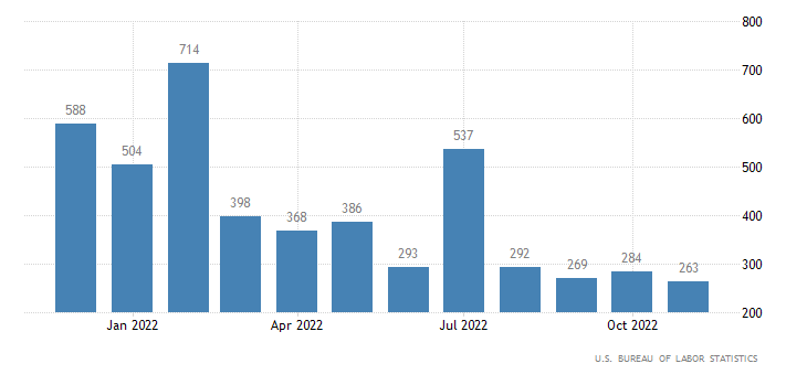 Il report del mercato del lavoro USA di novembre non ha mantenuto le attese di numeri moderati, in grado di assecondare la nuova tendenza di Powell ad una minore aggressività. I nuovi occupati sono usciti sopra attese e in linea con i mesi precedenti. A novembre nel settore non-agricolo sono stati creati 263 mila posti di lavoro, dato decisamente superiore al consensus di 200 mila, ma in calo rispetto alla rilevazione di 284 mila di ottobre (rivista da 261 mila).