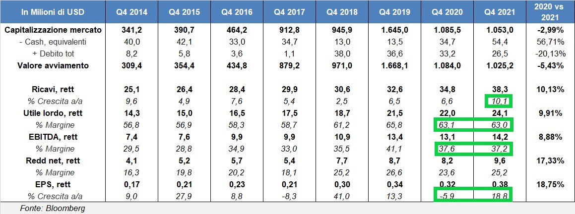Confrontando l’ultimo trimestre del 2021 rispetto al Q4 del 2020 emerge quanto segue:
