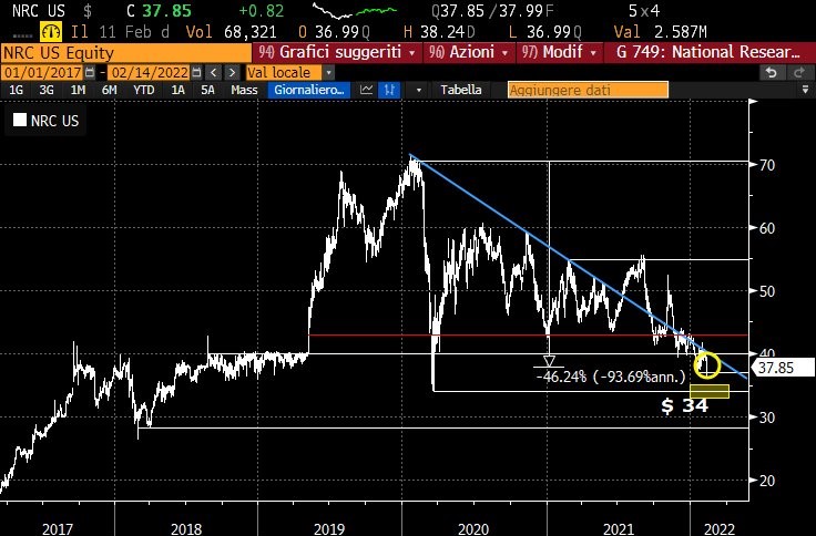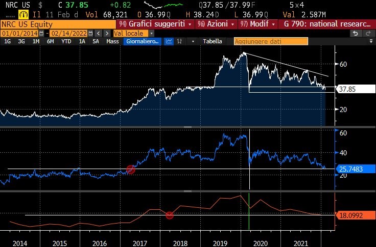 Nonostante i risultati evidenziati nel 2021, il mercato sta continuando a penalizzare eccessivamente NATIONAL RESEARCH: tuttavia, in questa precisa fase di studio, la severità di Mr. Market non appare un aspetto negativo. L’irrazionalità può trasformarsi (in alcuni casi) in opportunità.
