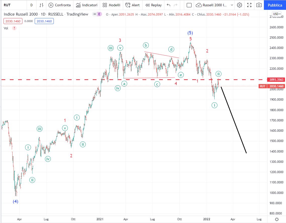Il secondo grafico è il Russell 2000 sempre su scala daily.