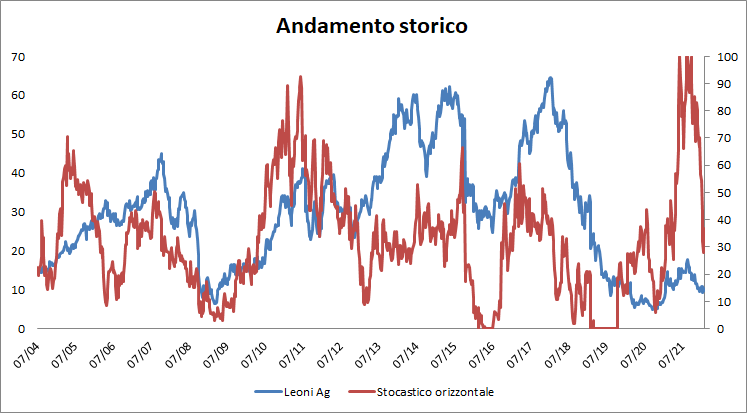 Lo Stocastico orizzontale ha scovato un asset che, per la prima volta della sua storia, ha sovraperformato in modo netto gli altri 70 titoli presi in considerazione mettendo a segno un bel rialzo, anche se non scontato, tra la fine febbraio e la fine di agosto 2021.