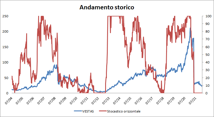 In questo momento, Vestas Ag si è mantenuto per il 32% del periodo preso in considerazione al di sopra di 70 e, per il 46% del tempo, sotto 30.