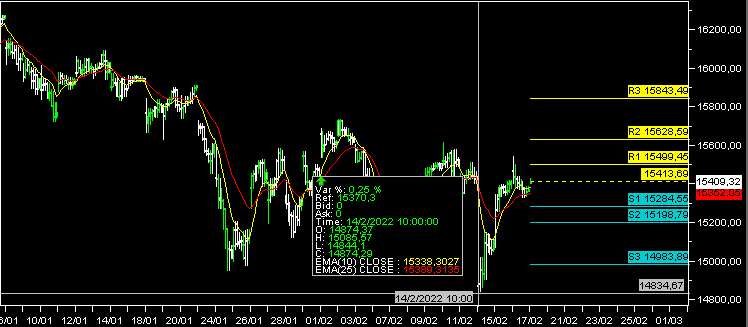 Come visibile nel grafico, durante la seconda ora di contrattazione, l'indice si è arrestato a 14844 per poi rimbalzare sino ai 15530 circa del mercoledi.