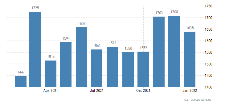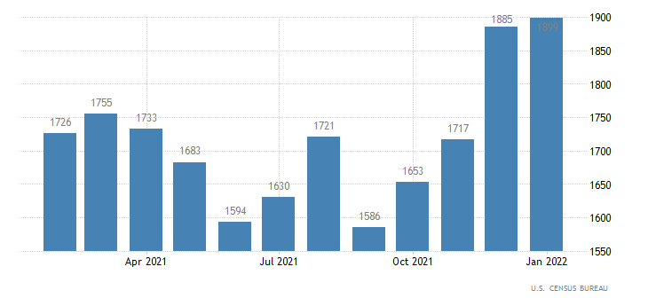 I permessi di costruzione emessi a Gennaio hanno toccato quota 1.899 milioni, registrando una crescita dello 0,7% rispetto a Dicembre quando il dato si era attestato a 1.885 milioni (dato rivisto da 1.873 milioni). Le previsioni per Gennaio erano di una contrazione a 1.760 milioni.